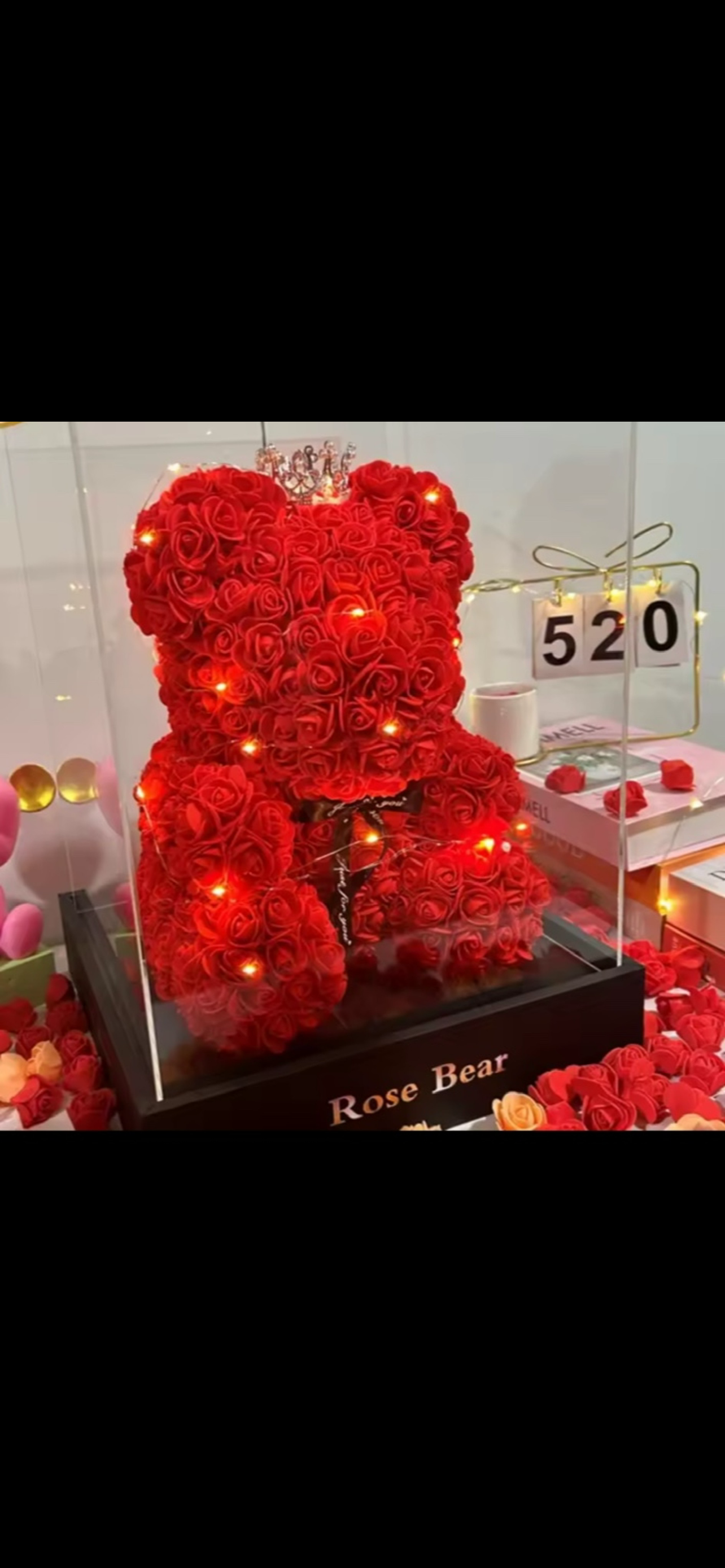Ours en Roses avec Bouquet Rouge – Cadeau Amour & Tendresse